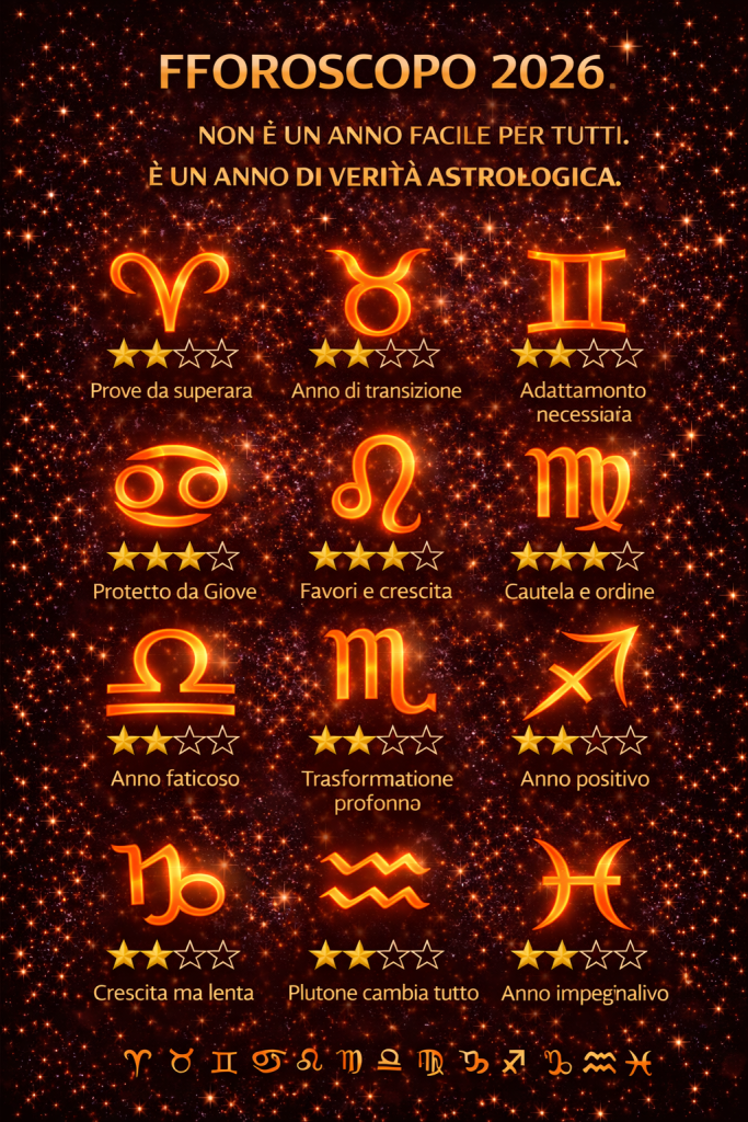 Questo è il FFOroscopo 2026 di FFMagazine, basato sui transiti astrologici reali.